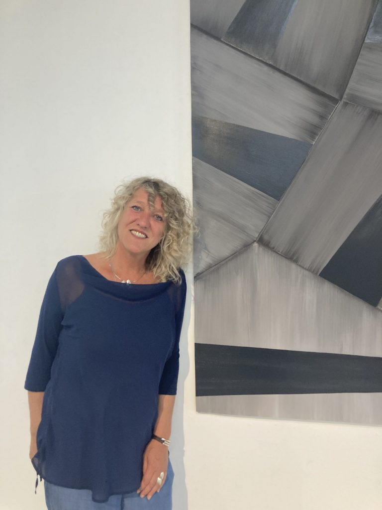 De opbouw is nu gestructureerder. De stabiele factor hierbij is mijn eerste stap. Die begint altijd met ‘de keuze van de kleur’. Daarna schilder ik tegenwoordig een vorm, die zich herhaalt, maar net niet klopt. Het patroon wat ontstaat lijkt buiten het doek eindeloos door te kunnen lopen. Dat geeft mij het gevoel van vrijheid en dat het schilderij niet vastzit.